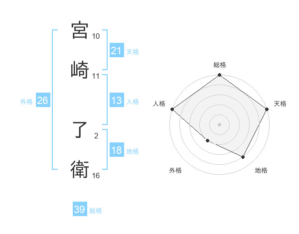 宮崎 了衛さんを姓名の画数から五運を鑑定