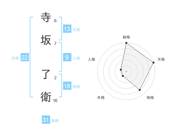 寺坂 了衛さんの総格は31画の5点!