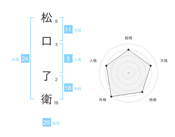 松口 了衛さんの総格は29画の4点!