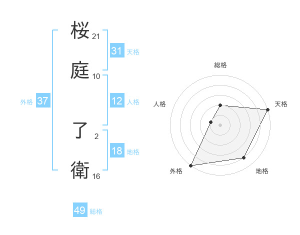 桜庭 了衛さんの天格は31画の5点!
