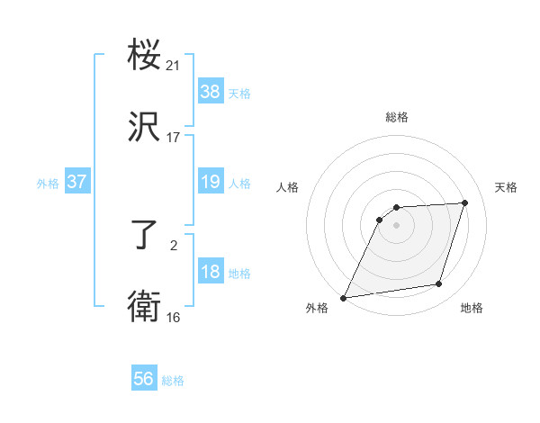 桜沢 了衛さんの天格は38画の4点!