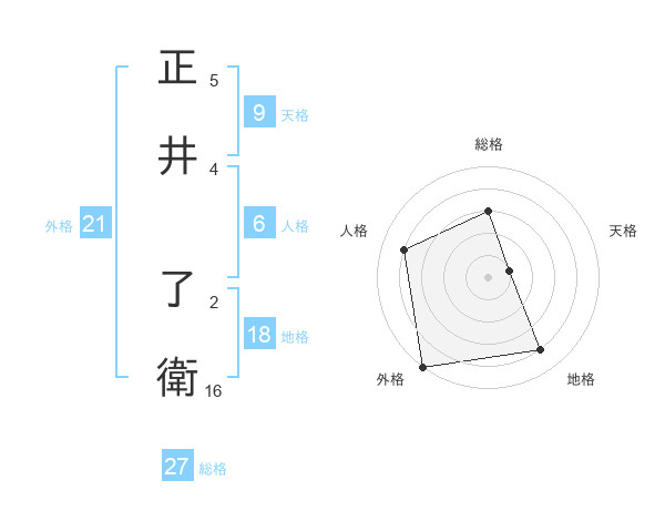正井 了衛さんの総格は27画の3点!