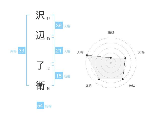 沢辺 了衛さんの天格は36画の3点!