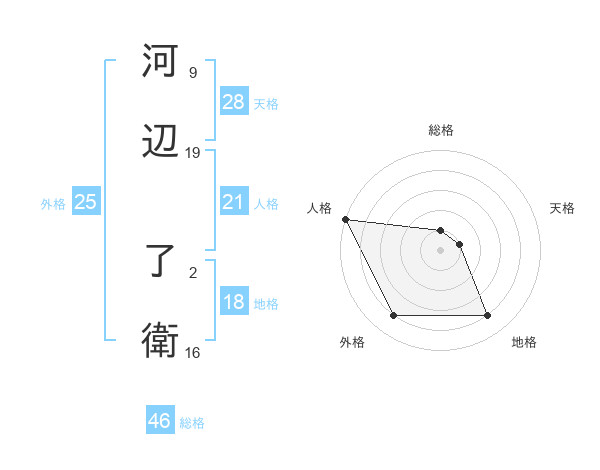 河辺 了衛さんを姓名の画数から五運を鑑定