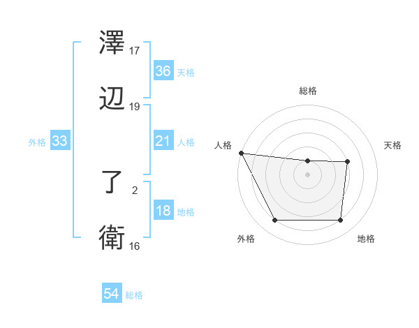 澤辺 了衛さんの総格は54画の1点!