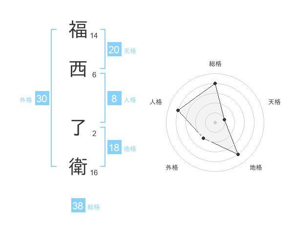 福西 了衛さんの総格は38画の4点!