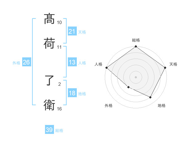 髙荷 了衛さんを姓名の画数から五運を鑑定