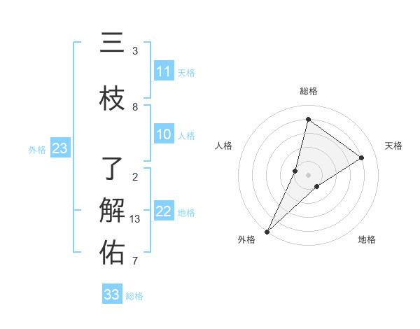 三枝 了解佑さんを姓名の画数から五運を鑑定