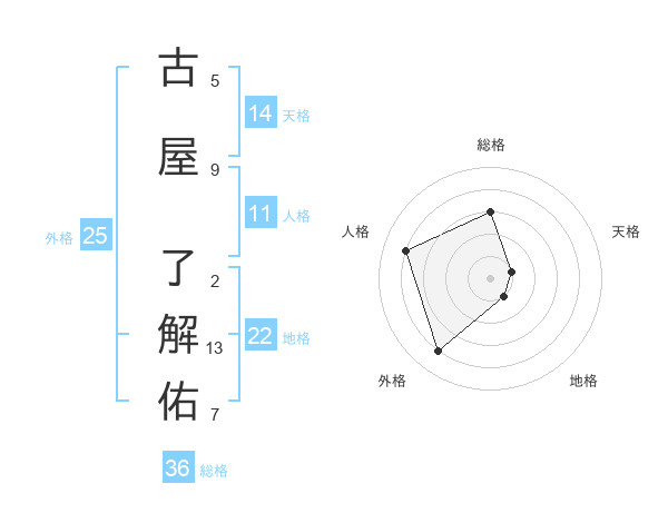 古屋 了解佑さんの地格は22画の1点!