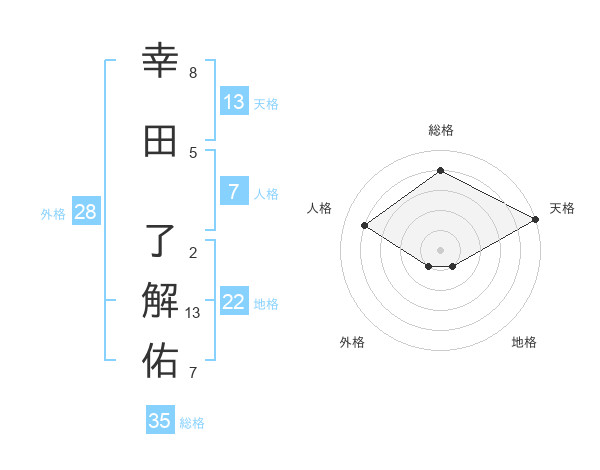 幸田 了解佑さんの天格は13画の5点!