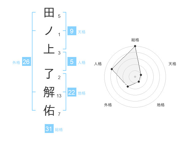 田ノ上 了解佑さんの総格は31画の5点!