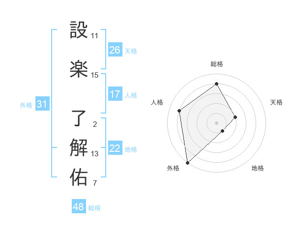 設楽 了解佑さんを姓名の画数から五運を鑑定