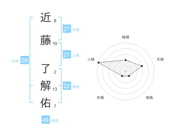 近藤 了解佑さんの総格は49画の2点