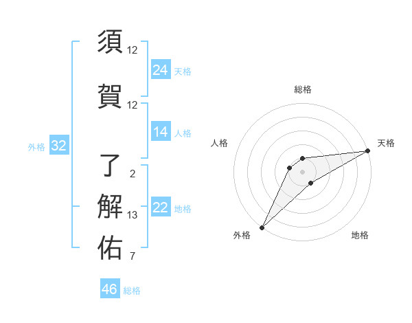 須賀 了解佑さんを姓名の画数から五運を鑑定