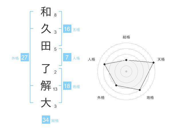 和久田 了解大さんを姓名の画数から五運を鑑定