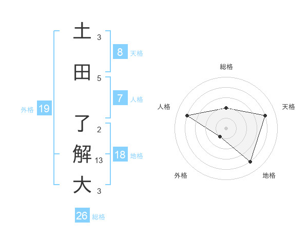 占い結果は姓名判断である以上、良い場合も悪い場合もありますが、決してお名前を誹謗中傷するものでなく、画数の自動計算によって得られたものです。また、本サイトの検索によって得られた鑑定結果で、第三者を誹謗中傷したり名誉を棄損するような行為を禁じます。