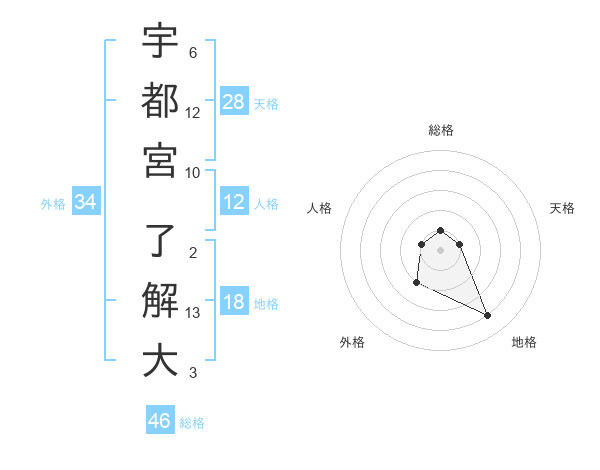 宇都宮 了解大さんを姓名の画数から五運を鑑定