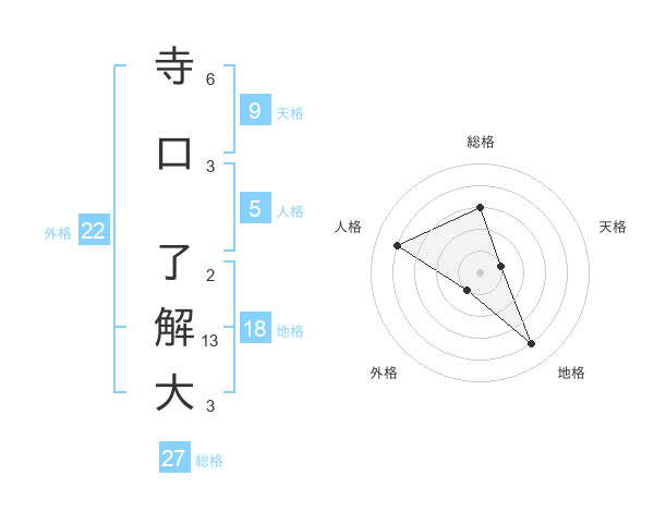 寺口 了解大さんの地格は18画の4点!