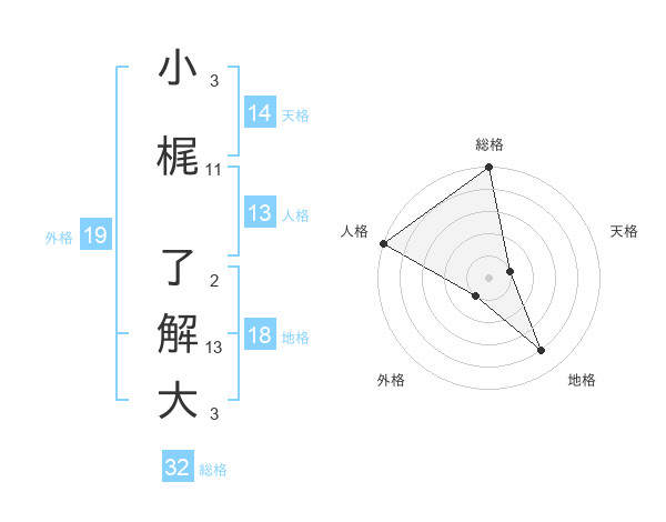 小梶 了解大さんの総格は32画の5点!