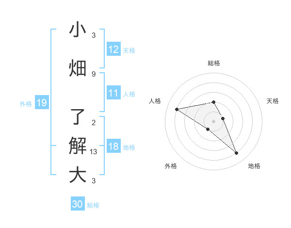 小畑 了解大さんの外格は19画の1点!