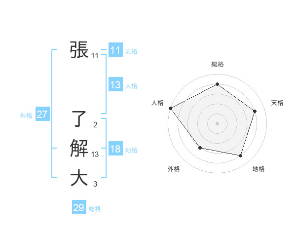 張 了解大さんの総格は29画の4点!