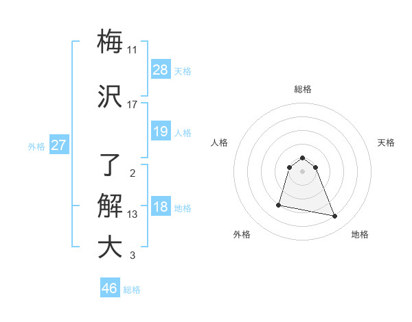 梅沢 了解大さんの総格は46画の1点!