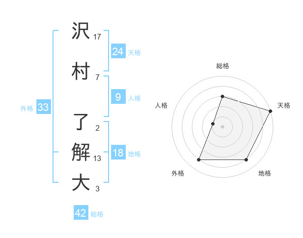 沢村 了解大さんを姓名の画数から五運を鑑定