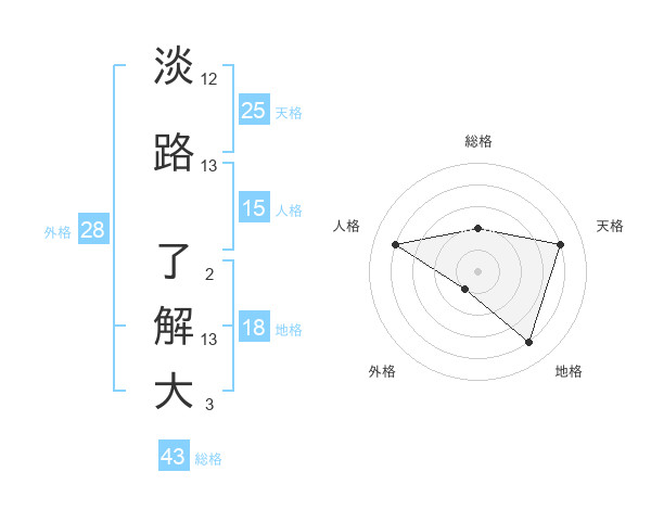 淡路 了解大さんの総格は43画の2点!