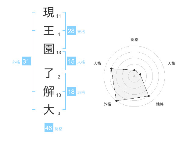 現王園 了解大さんの総格は46画の1点!