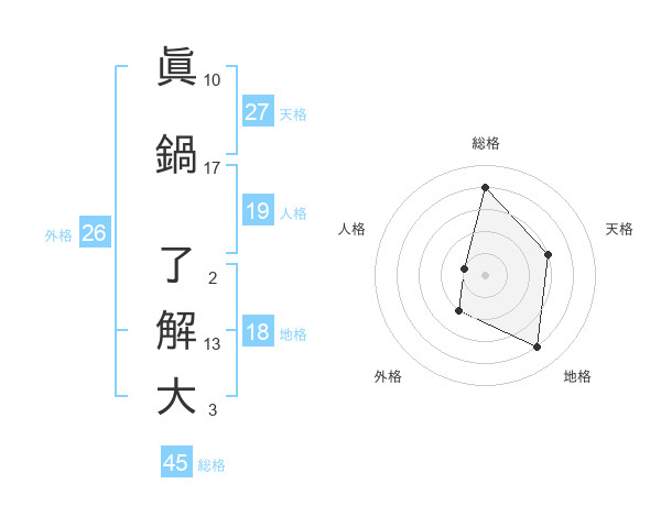 眞鍋 了解大さんを姓名の画数から五運を鑑定