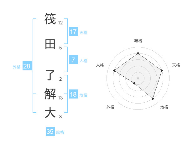 筏田 了解大さんを姓名の画数から五運を鑑定