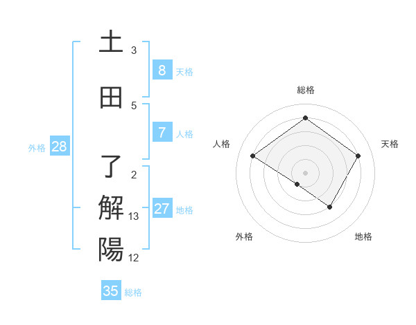 土田 了解陽さんを姓名の画数から五運を鑑定