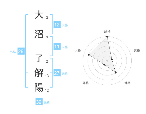 大沼 了解陽さんを姓名の画数から五運を鑑定