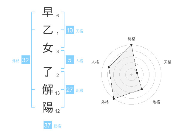 早乙女 了解陽さんを姓名の画数から五運を鑑定