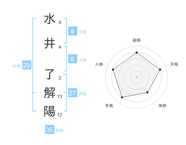 水井 了解陽さんを姓名の画数から五運を鑑定