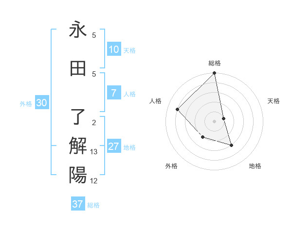 永田 了解陽さんを姓名の画数から五運を鑑定