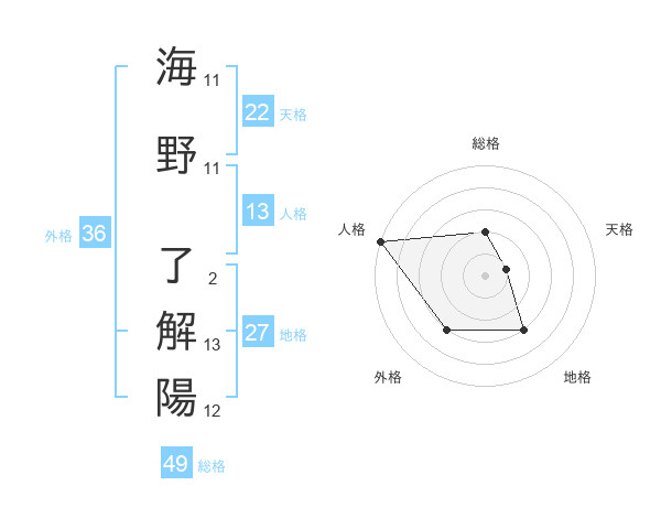 海野 了解陽さんを姓名の画数から五運を鑑定