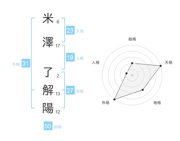 米澤 了解陽さんを姓名の画数から五運を鑑定