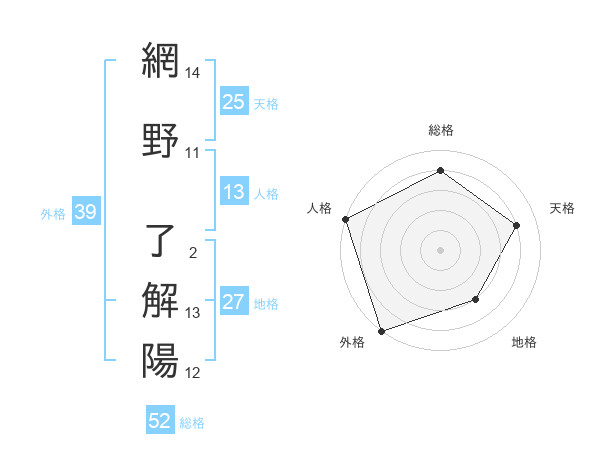網野 了解陽さんを姓名の画数から五運を鑑定
