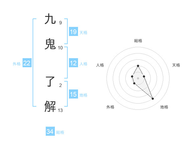 九鬼 了解さんの外格は22画の1点!