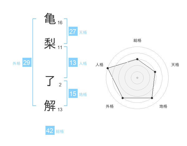 亀梨 了解さんの外格は29画の4点!