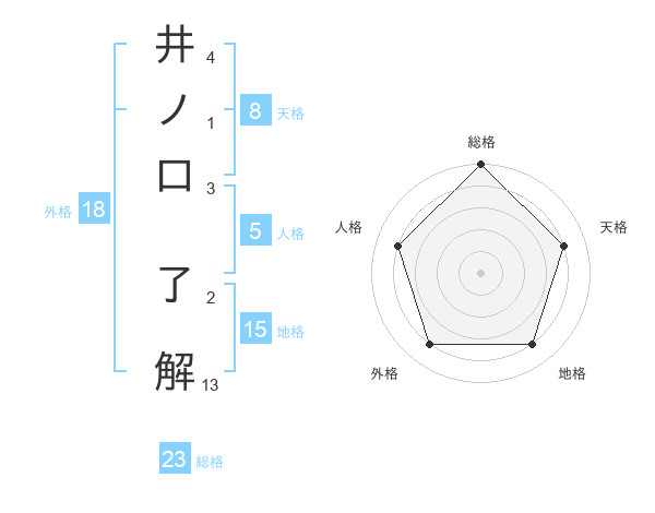 井ノ口 了解さんの総格は23画の5点!