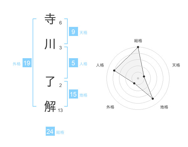 寺川 了解さんの総格は24画の5点!