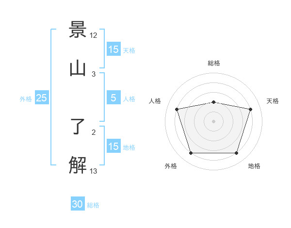 景山 了解さんの天格は15画の4点!