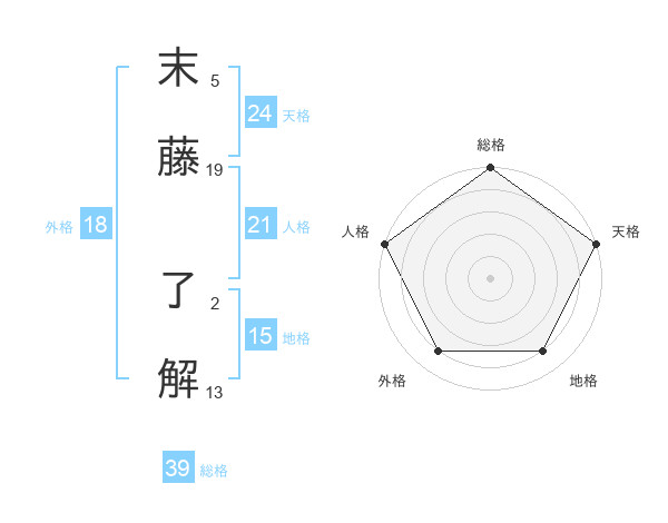 末藤 了解さんの総格は39画の5点!
