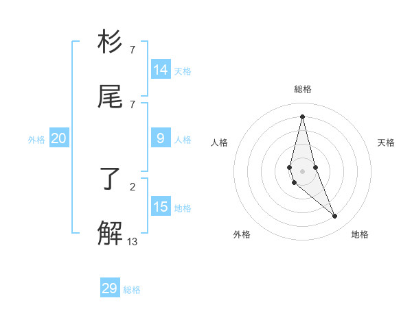 杉尾 了解さんを姓名の画数から五運を鑑定