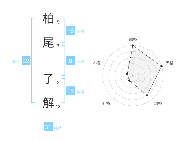 柏尾 了解さんの天格は16画の5点!