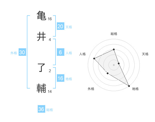 亀井 了輔さんの地格は16画の5点!