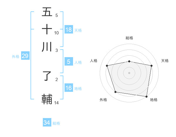 五十川 了輔さんの総格は34画の2点