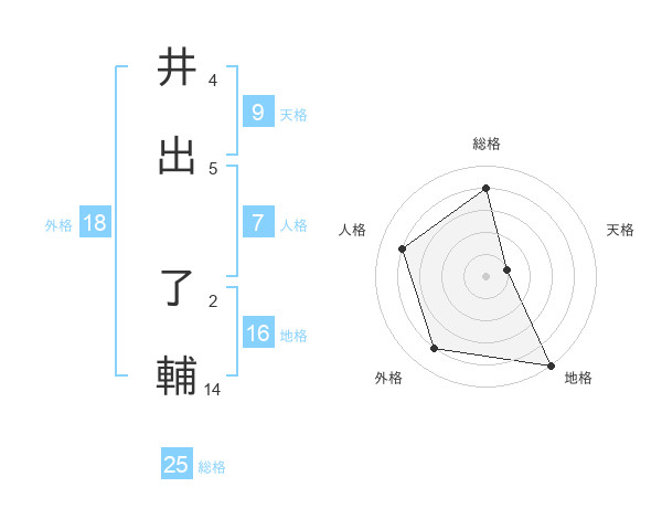 井出 了輔さんの総格は25画の4点!